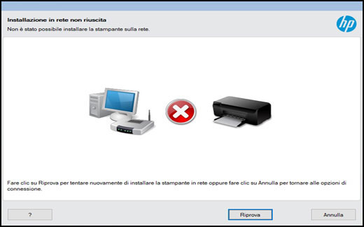 stampanti hp errore installazione di rete non riuscita windows assistenza clienti hp