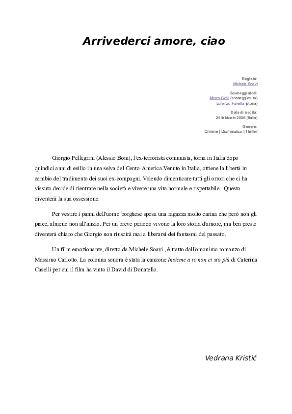 doc recensione del film arrivederci amore ciao vedrana kristic academia edu