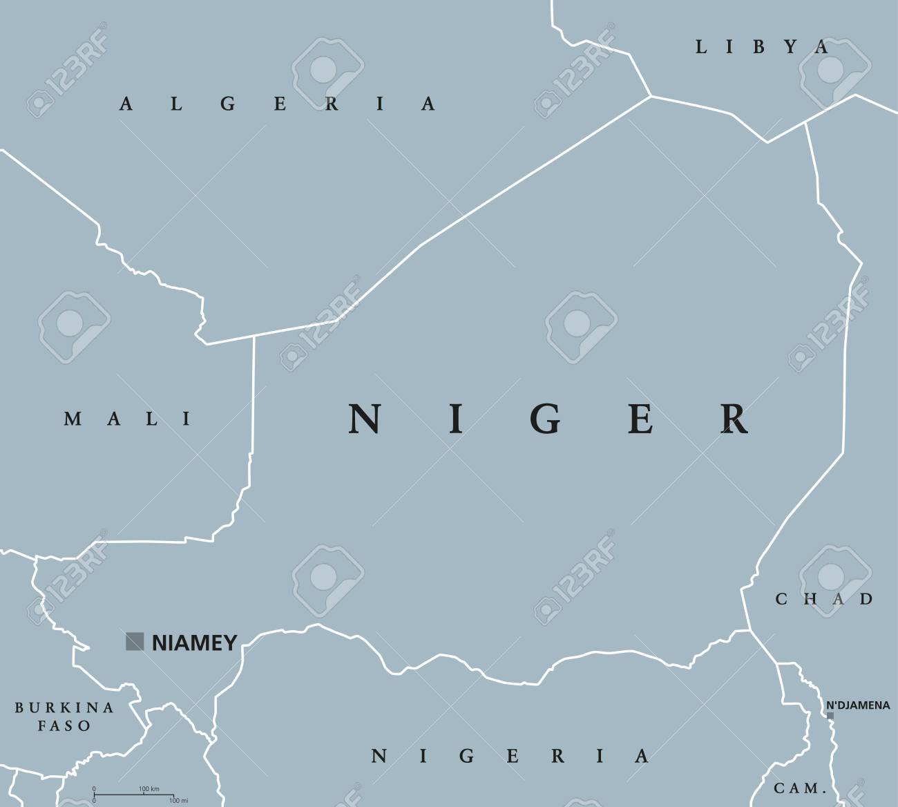 niger political map with capital niamey international borders and neighbors republic and landlocked country in west africa gray illustration english labeling vector royalty free cliparts vectors and stock illustration image 82021344