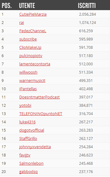 youtuber italiani classifica