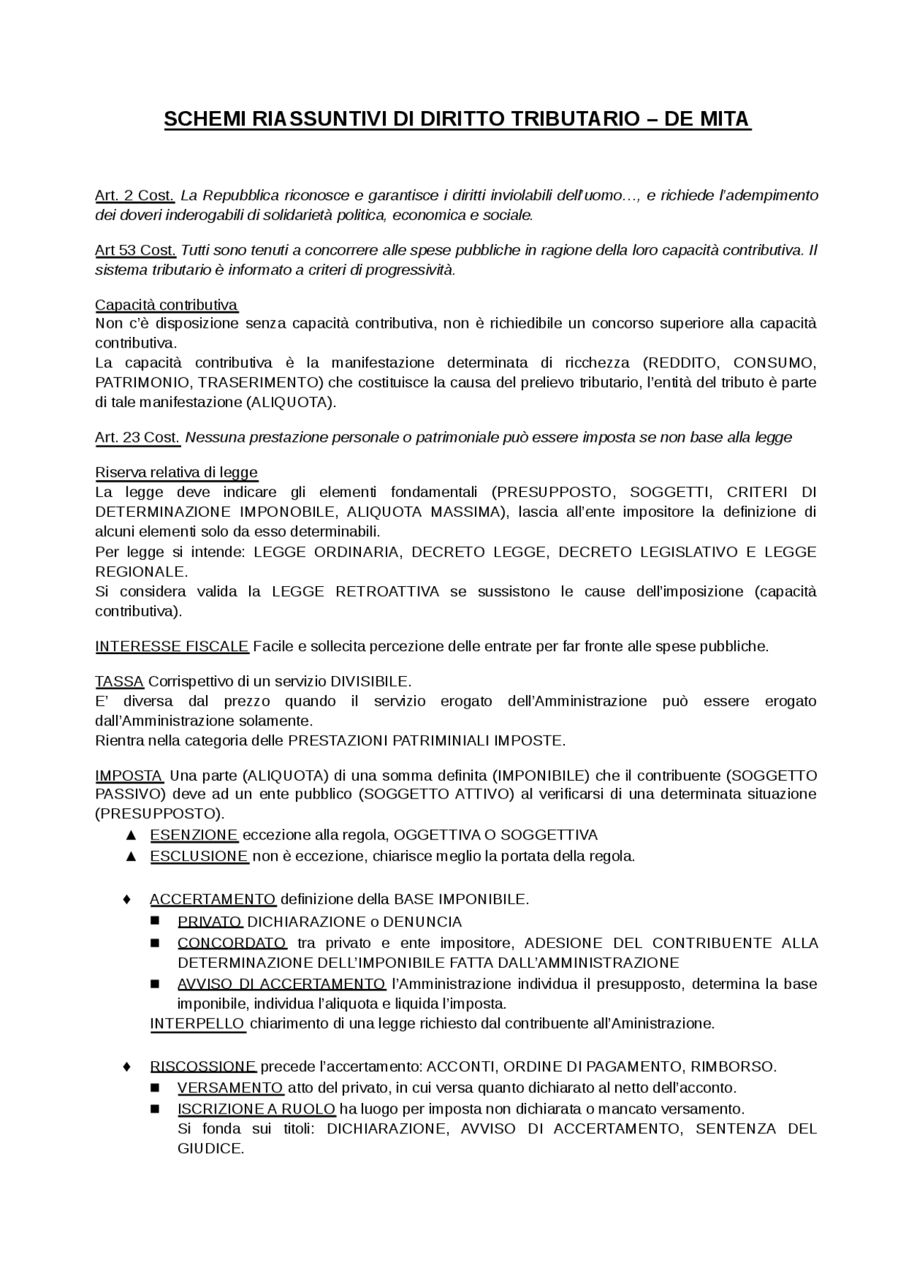 schemi riassuntivi di diritto tributario docsity