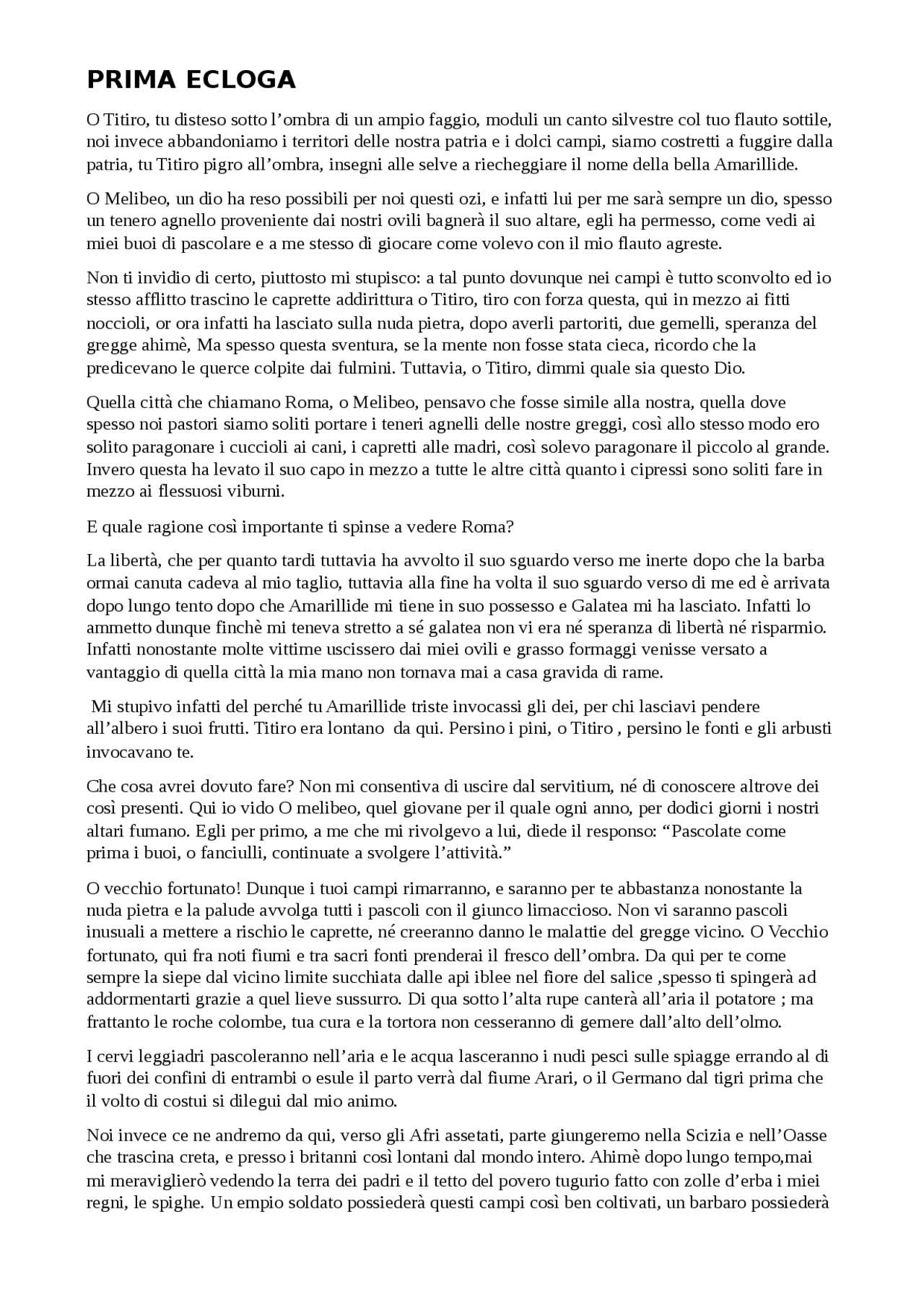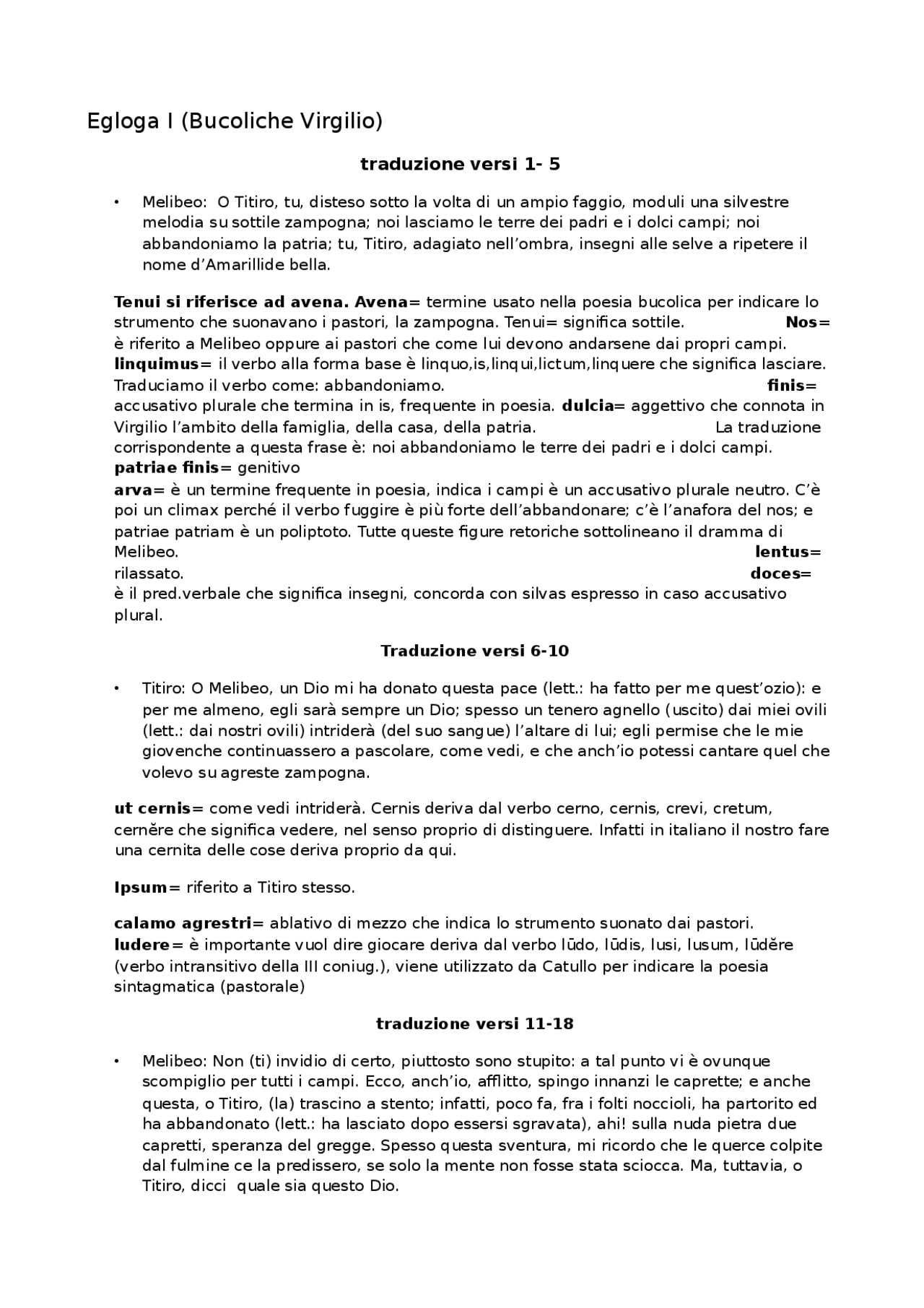 traduzione letterale bucoliche docsity