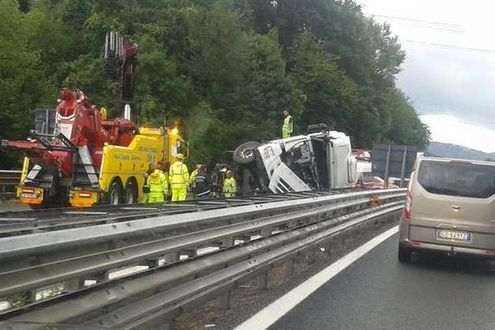 maltempo camion si ribalta sull autostrada a7 a causa della pioggia un ferito quotidiano piemontese