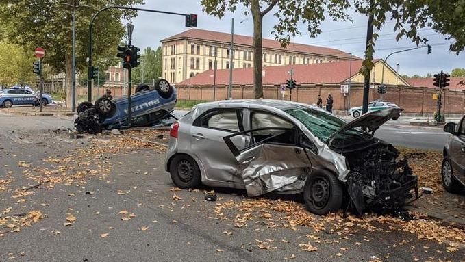 incidente in corso unione sovietica angolo via filadelfia e piazzale san gabriele da gorizia a torino scontro tra due auto una ribaltata pirata della strada fuggito scappato 5 agosto 2021
