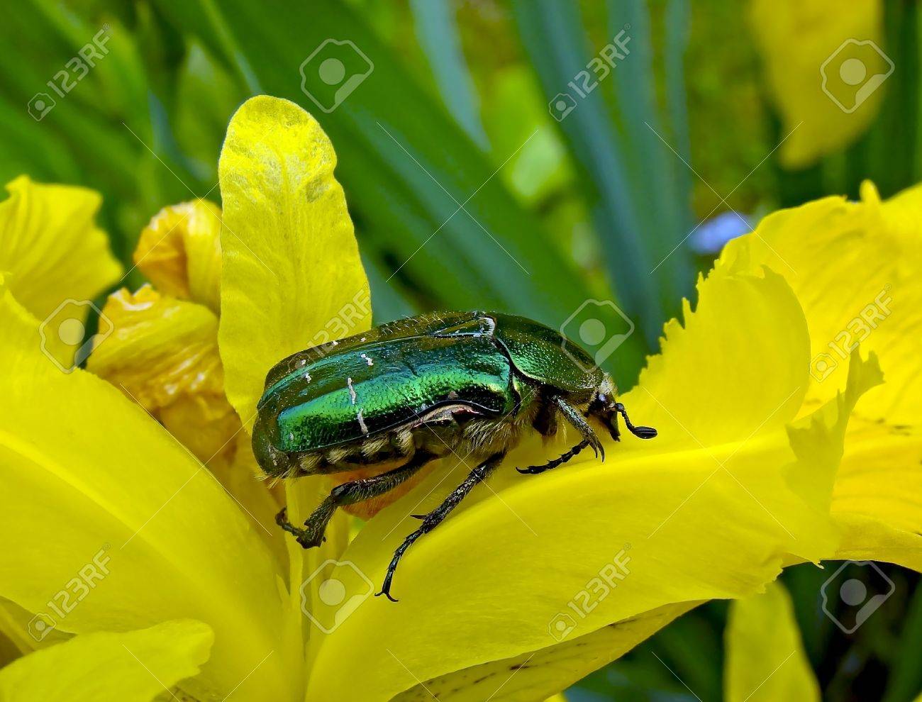 immagini stock il fiore di rinforzo e un coleottero bello lucido smeraldo verde e abbastanza grande image 8737931