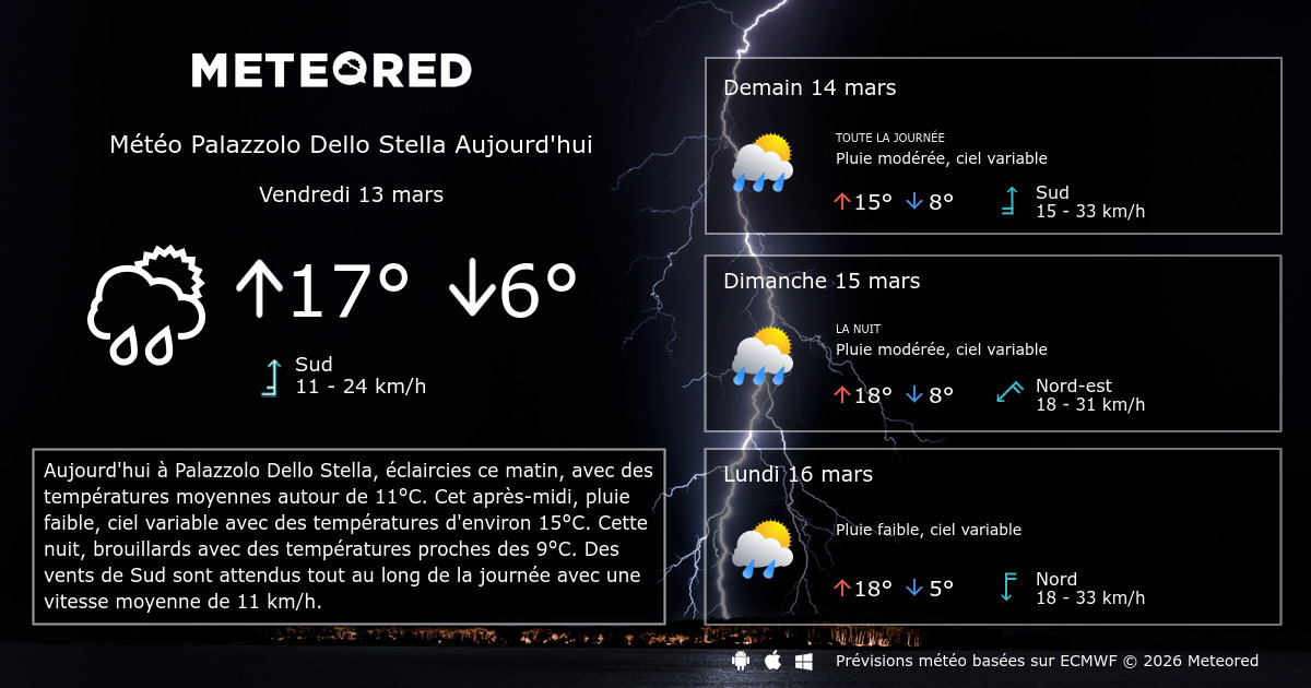 meteo palazzolo dello stella 14 jours tameteo com meteored