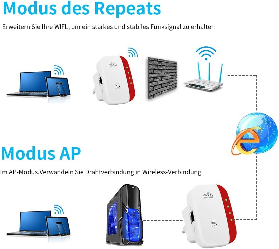 bewlaner ripetitore wifi pulsante wps ripetitore segnale wifi compatibile con tutti i modem in fibra e adsl 300mbps wifi extender e access point migliora la tua copertura wi fi porta fast ethernet periferiche
